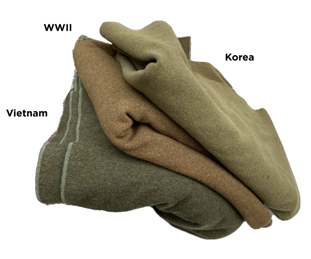 Our vests combine vintage US military blanket wool from the branch of your choosing- Army, Navy, Air Force or Marines. The quality of woven wool for the armed forces evolved from WWII into the Korean and Vietnam War era, each with their own unique blend, texture and color.